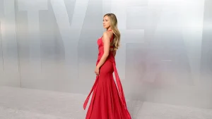 Певицата избра впечатляващ червен силует, който веднага привлече вниманието на червения килим и подчерта нейния все по-изразен моден стил. Изборът на дръзкия цвят и модерния дизайн затвърди имиджа ѝ на уверена и стилна млада звезда.